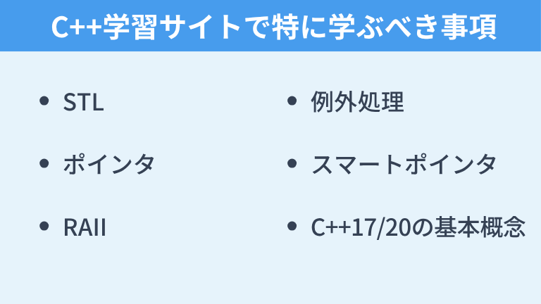 C++学習サイトで特に学ぶべき事項
